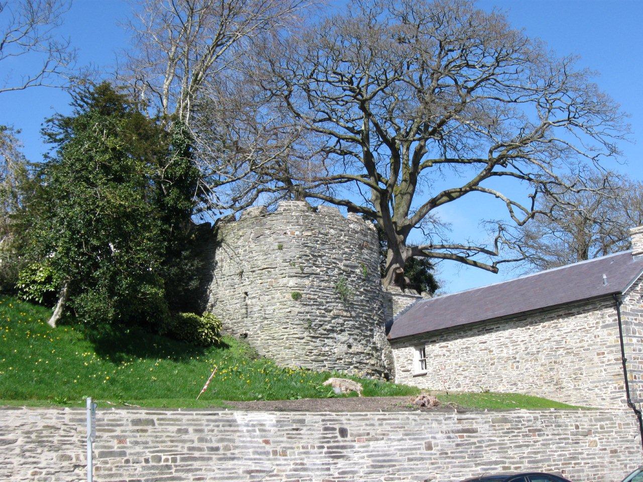 The north east bastion with the post-medieval house beyond. The garden wall at the upper right of this picture marks the position of the outer bailey.