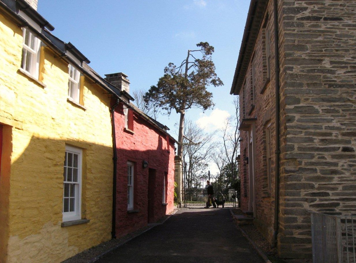 The passage towards the presumed site of the main gatehouse. The cottages either side are much later.