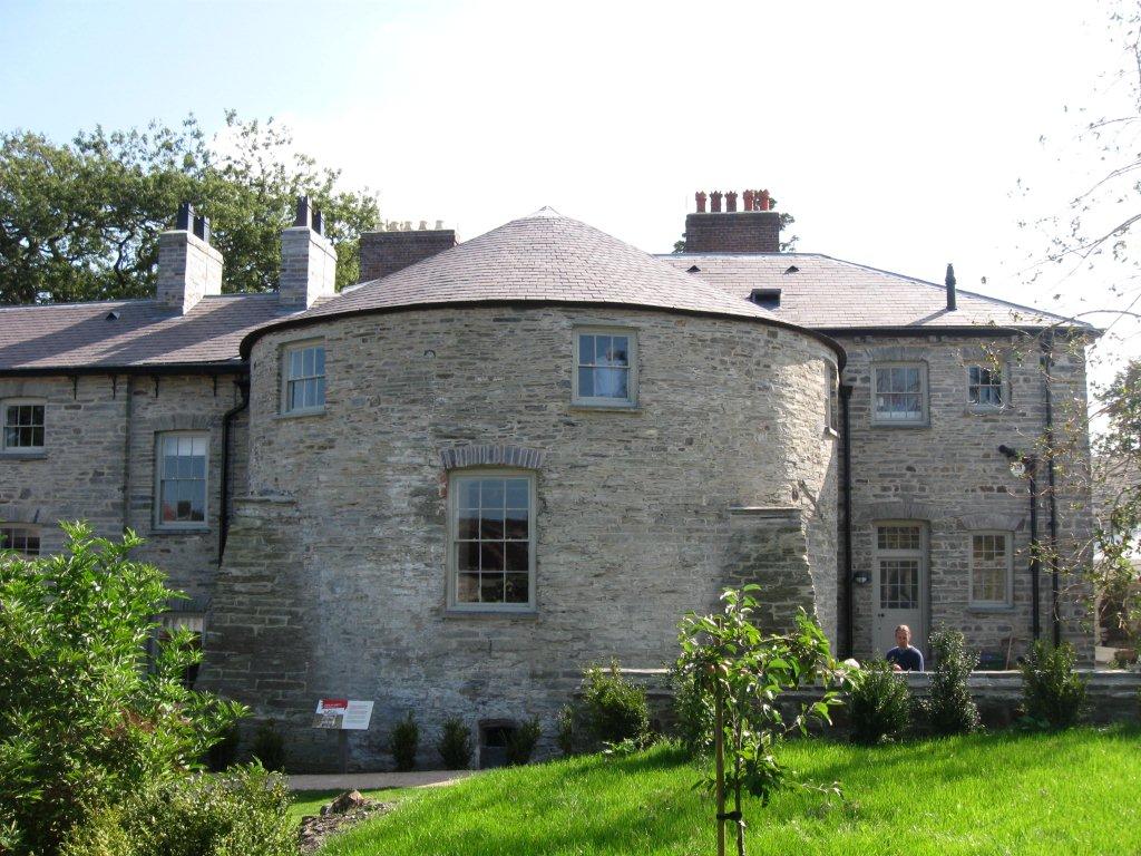 The remains of the great tower incorporated into the 19th century house. The protective ditch has been filled in and the garden has been raised above the original ground level.