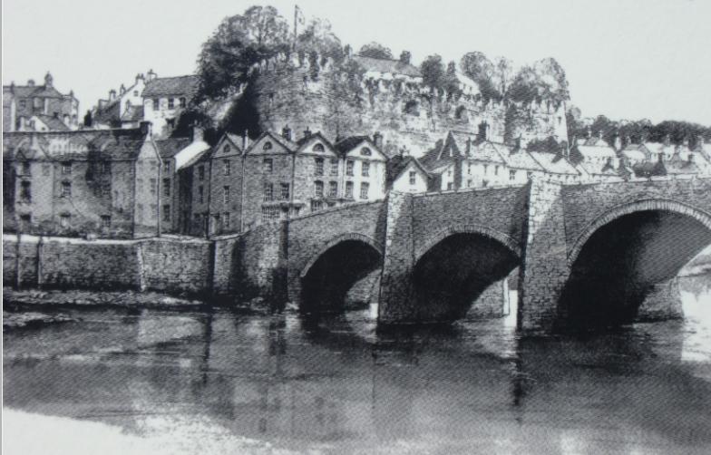 A sketch of the southern side of the castle taken from the tourist information board across the river.