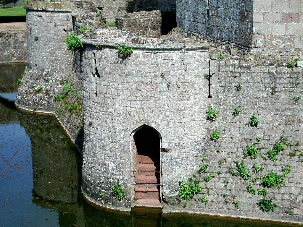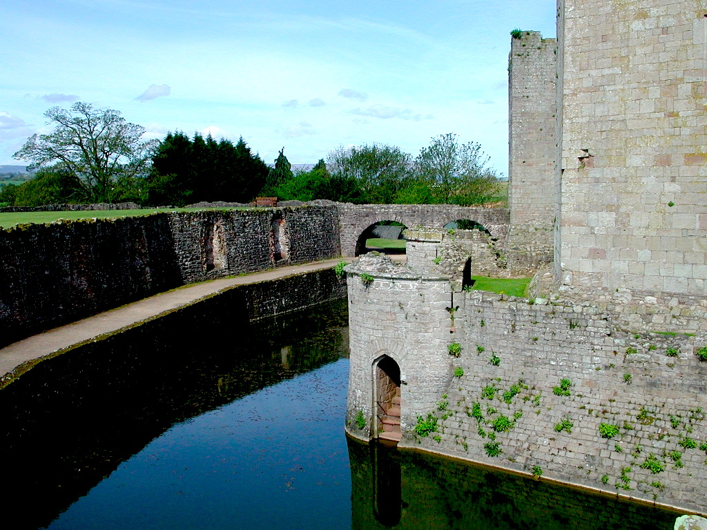 The castle apron wall or, chemise, was typically a low wall encircling the keep, protecting the base of the tower, like the one separating the moat from the Great Tower at Raglan Castle in southeast Wales.