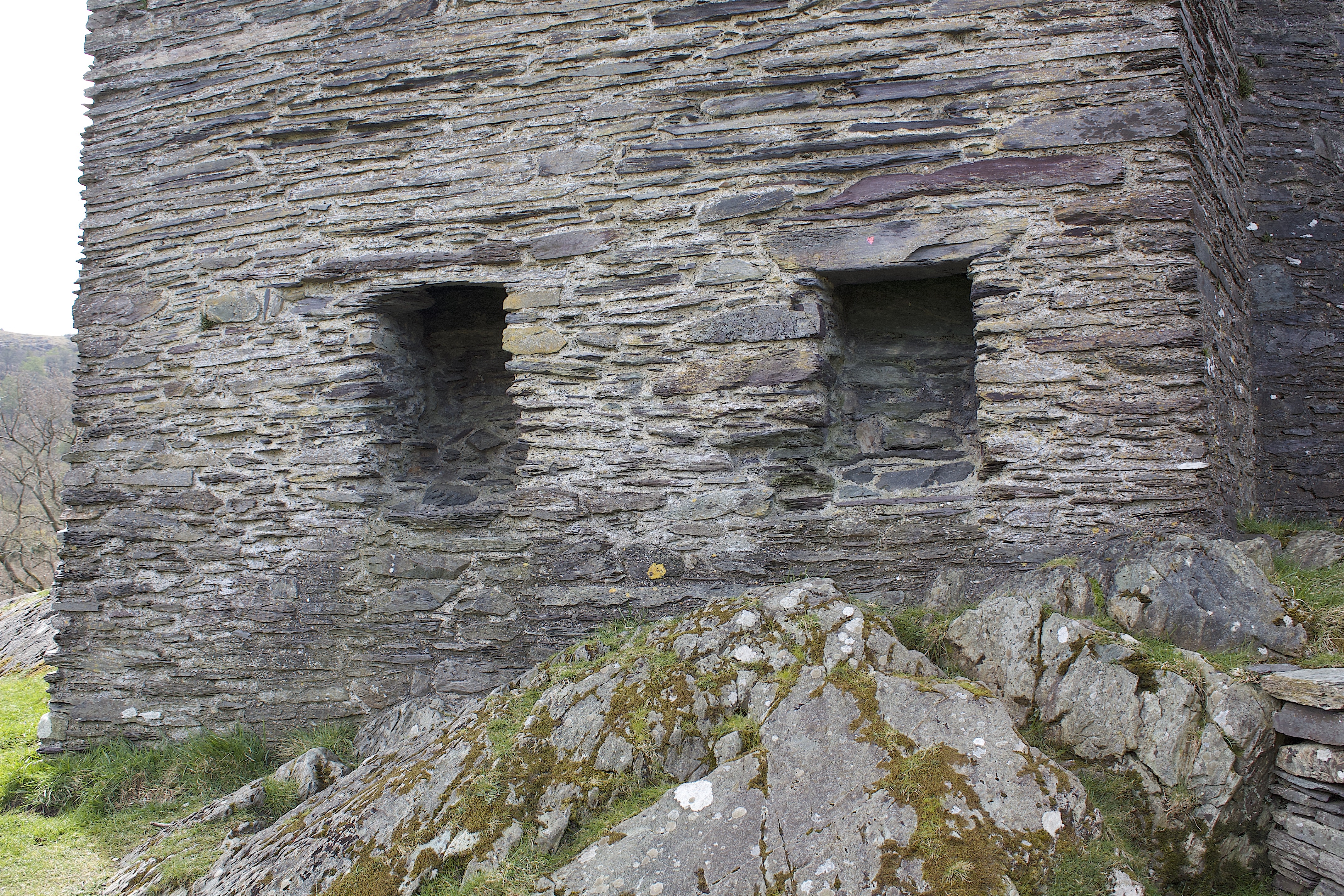 Below: (1) internal view of the garderobe and seat at Carreg Cennen Castle, (2) the ornate exterior of a garderobe at Beaumaris Castle, and (3) exterior discharge of a double garderobe at Dolbadarn Castle.