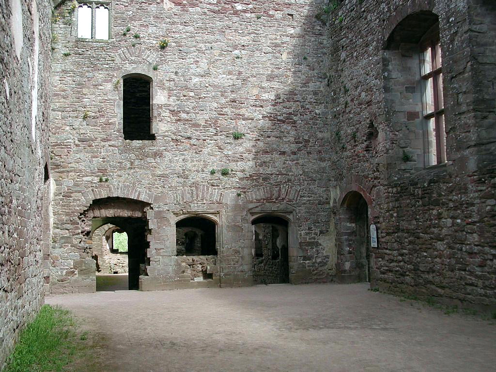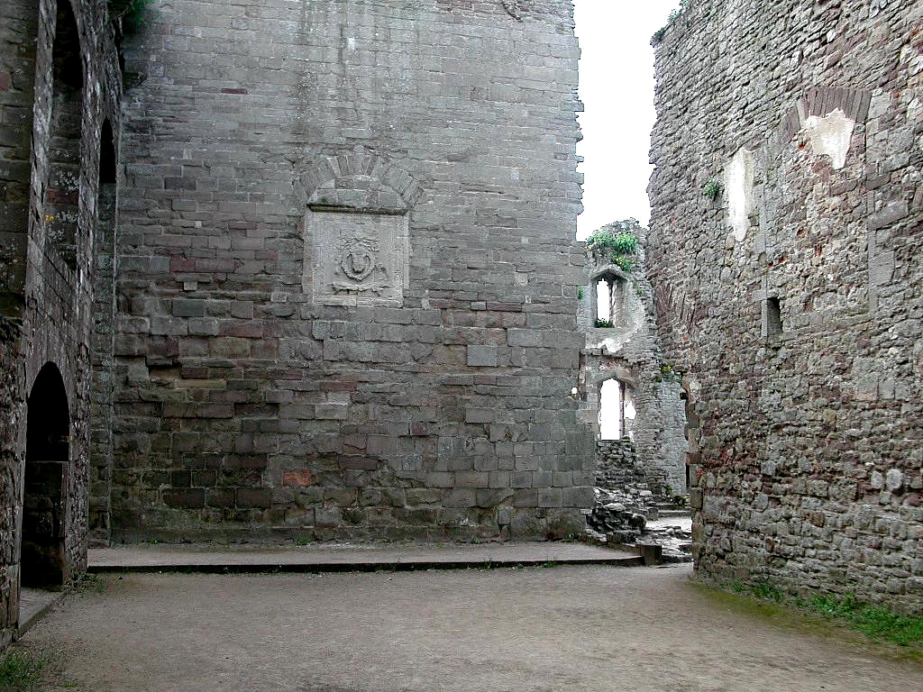 The hall is the finest and most complete of all the castle's surviving apartments, and in its present form it dates from the 16th century, although incorporating parts of the earlier hall of Sir William ap Thomas. This is shown by the two blocked windows in the south-west wall. Part of the lower courses of masonry in the gable wall is also likely to date from the first half of the 15th century. The great fireplace, with its divided flue running up either side of the window above it and the delicately moulded roof corbels, are all part of the work carried out by the 3rd earl of Worcester, probably by 1570. The lord and his family would have sat at the dais end nearest the state apartments, whilst the food was brought through doors at the far end.