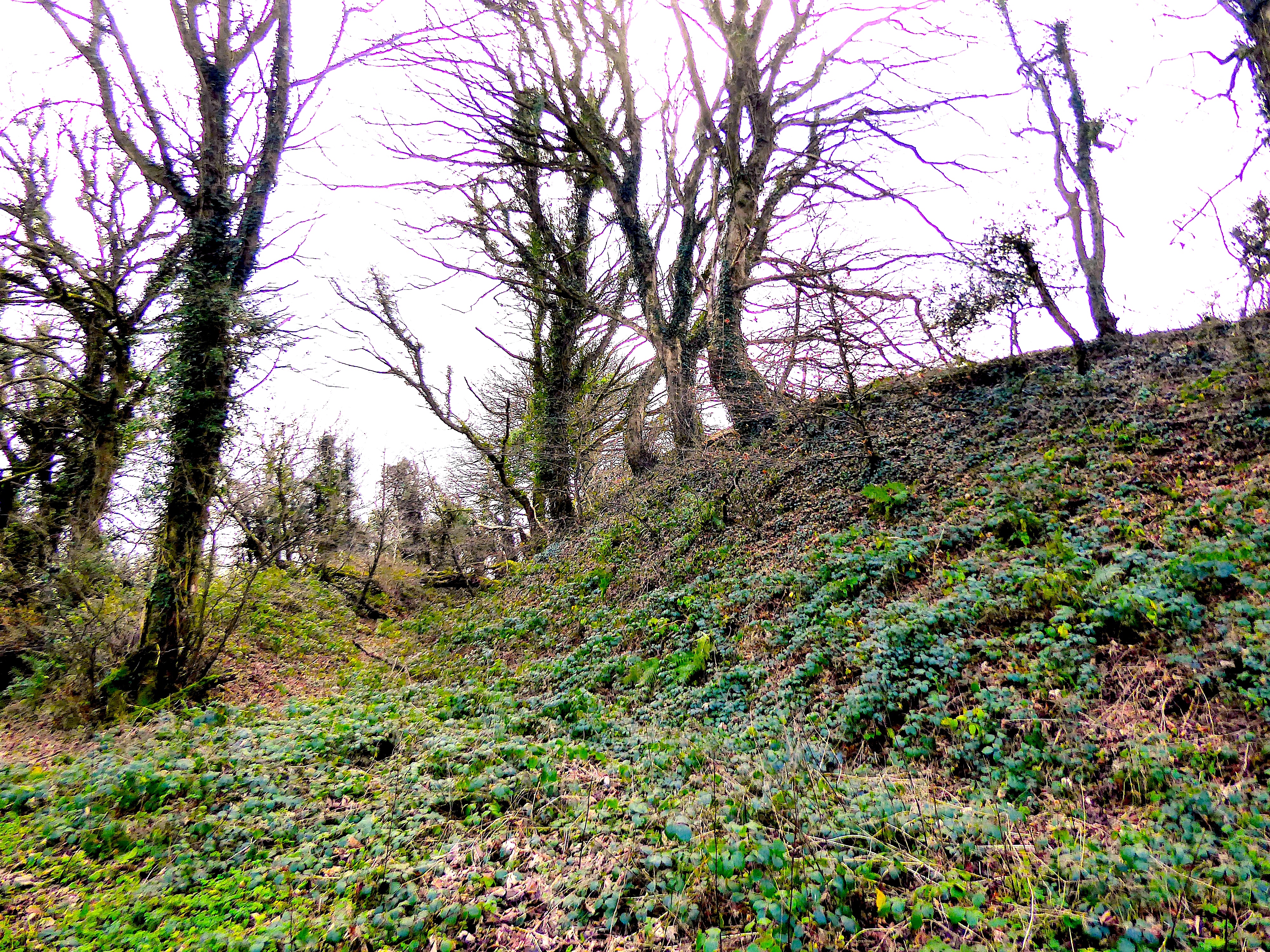 Above: the impressive iron age bank, ditch and counterscarp bank at the south side of the fort.