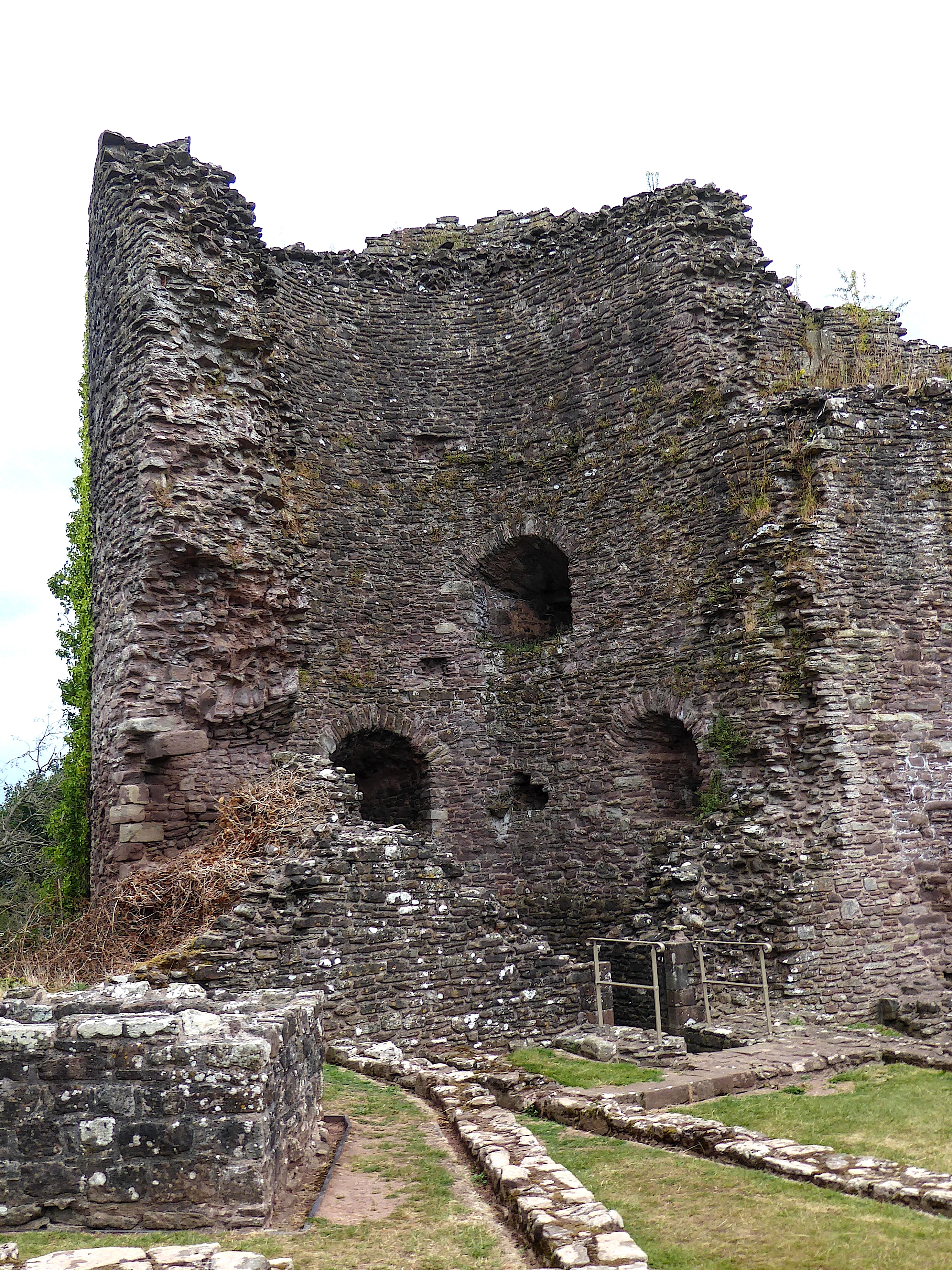 Below left: The south-western tower was added to the original stone enclosure wall, which itself was built in place of a wooden rampart. Below right: Looking across the inner bailey from West to east.